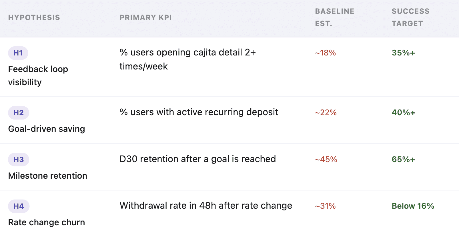 Rate transparency — If we proactively explain rate changes with context (Banxico decision, comparison to previous rate, positioning vs CETES), then withdrawal rate in the 48 hours after a rate change will decrease, because anxiety comes from silence, not from the change itself.